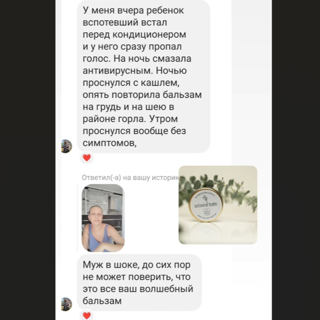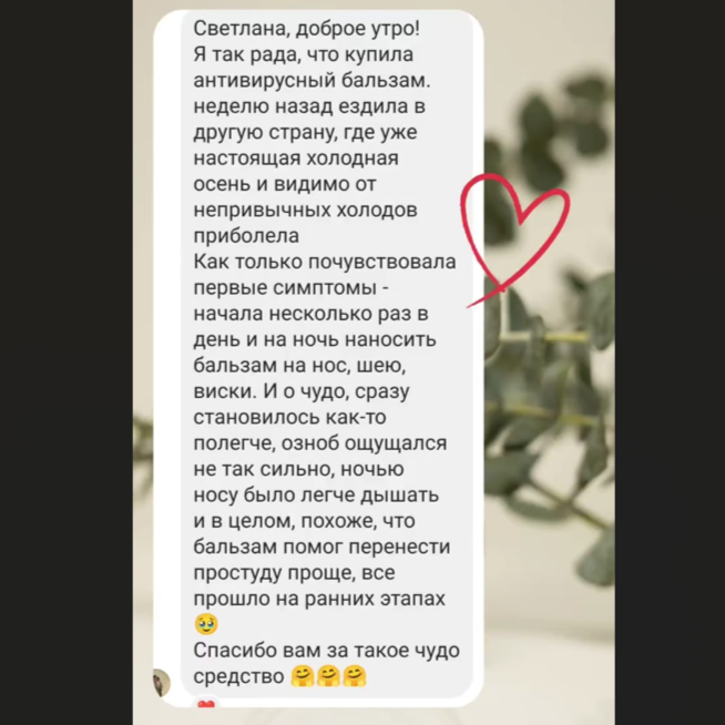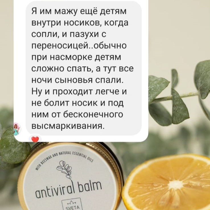Противовирусный бальзам содержит эфирные масла, с доказанной эффективностью против ОРВИ, гриппа, бактериальных инфекций.