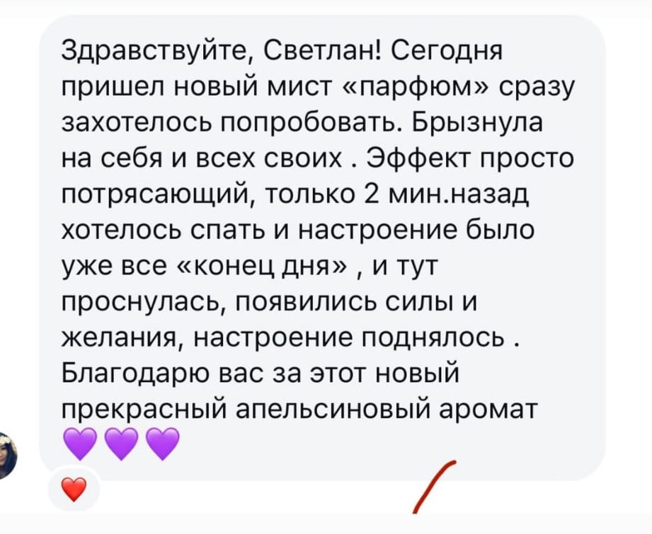 Этот спрей содержит натуральные эфирные масла и экстракты, поэтому аромат может: