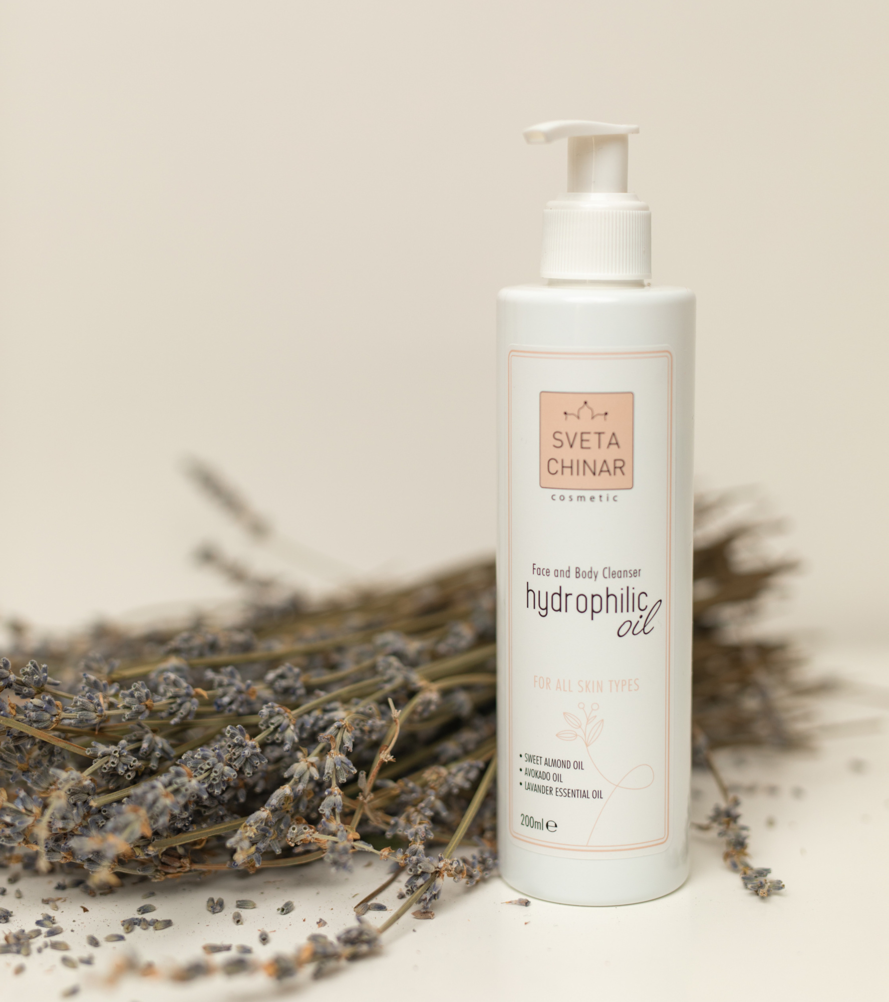 Гидрофильное масло моей марки не содержит даже грамма синтетики или ПАВ. Только натуральные ценные масла, растительный солюбилизатор (для растворения масла в воде) и настоящее эфирное масло лаванды. Поэтому, когда вы очищаете кожу им, то вы ничего не нарушаете: жиры масла мягко и бережно цепляют за собой загрязнения, принкают в поры, разжижают и растворяют в себе кожное сало, скопившийся секрет (а это черные точки и комедоны), и выводит его наружу. Всё это мягко смывается только водой.