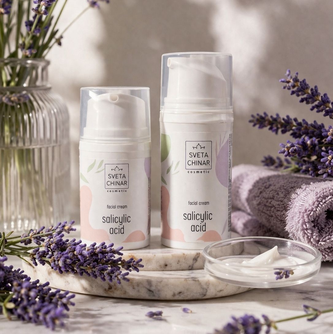 Очищение и обновление: салициловая и азелаиновая кислоты мягко отшелушивают, уменьшают воспаления и способствуют выравниванию тона.