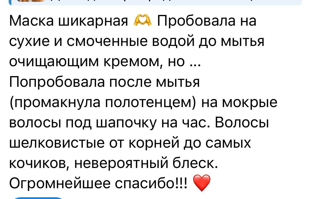 Если у вас нет ни одной из перечисленных проблем, то маску все равно можно и нужно использовать для их профилактики. Ну и конечно же, летом это восстановление кожи головы и волос после солнечного излучения, чтобы по осени не столкнуться с проблемой выпадения или ломкости волос. При регулярном использовании качество волос: упругие, блестящие, увлажненные, плотные, в меру гладкие.
